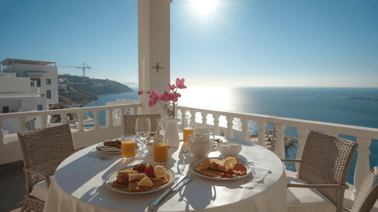 “Relájate en una terraza privada con vistas al atardecer.”